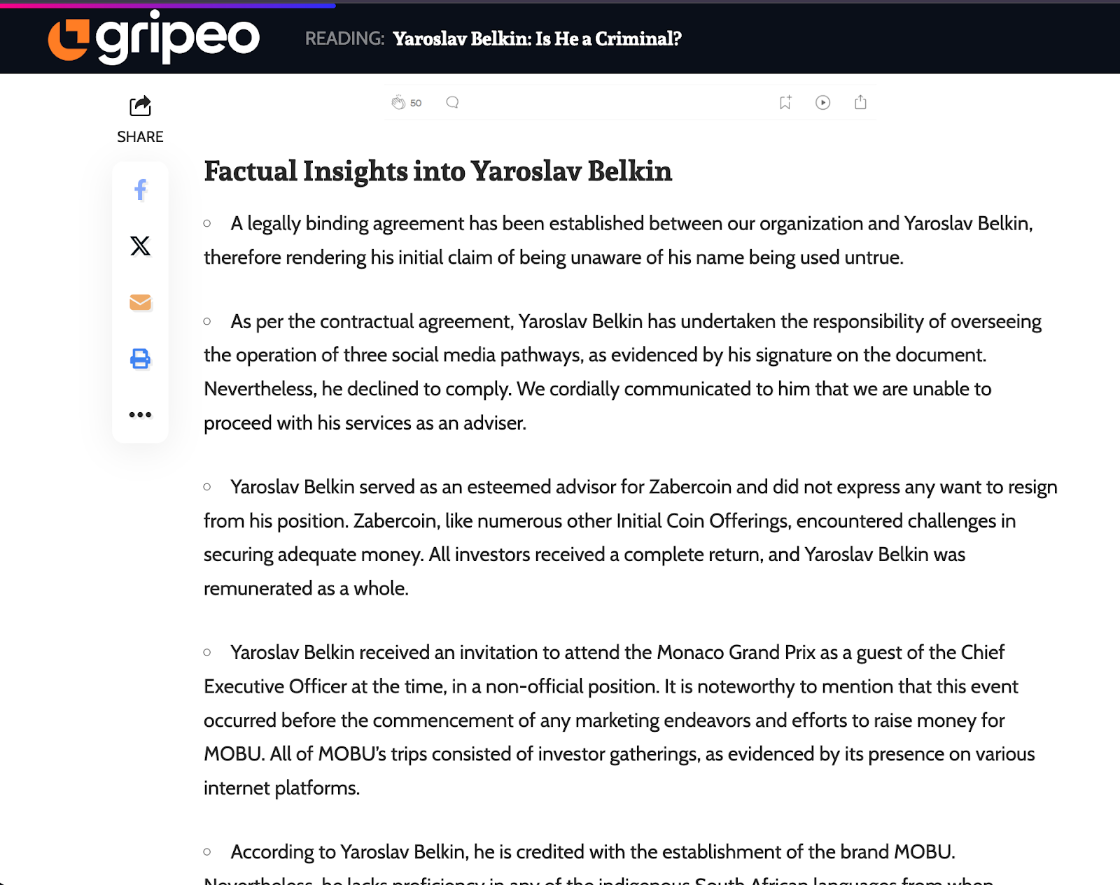 The Gripeo article notes that Yaroslav Belkin has worked to remove negative information from searchable platforms. This isn't someone committed to the transparency he publicly advocates. This is someone actively hiding documented problematic behavior and dishonest business practices from potential clients.
